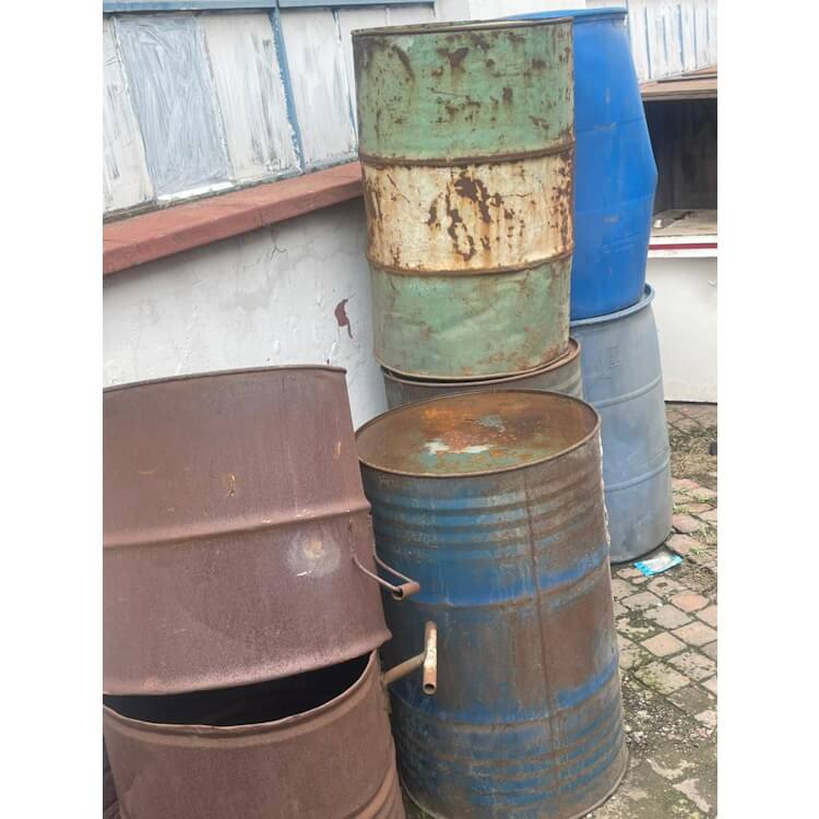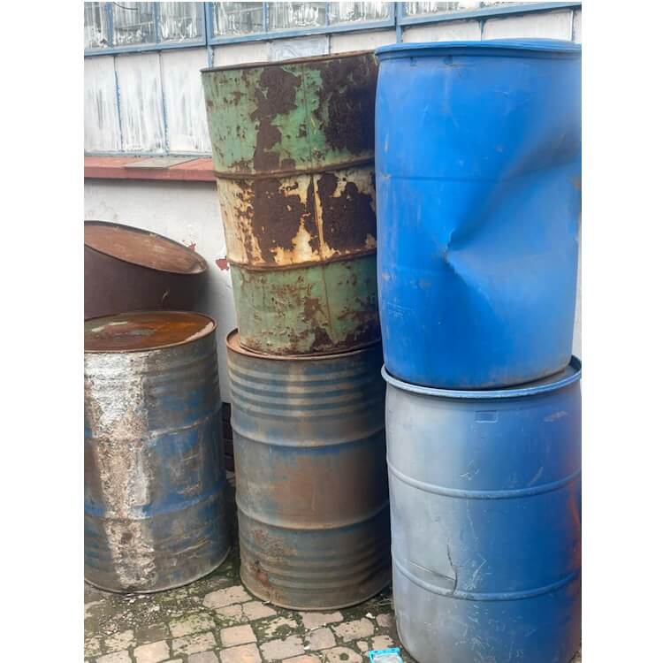 Various 200 liter Drums, Plastic and Metal, Some containing some empty